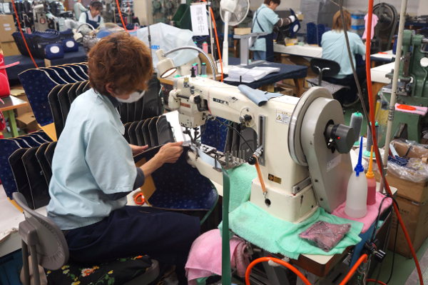 丁寧に一つ一つミシンで縫っていきます。本当に熟練の手作業を必要とする工程が多いですね。